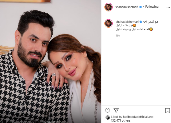 شاركت الشاعرة والإعلامية العراقية شهد الشمري، جمهورها بصور جديدة تجمعها بزوجها فهد زيد القطري، وذلك بعد أيام من زواجهما.